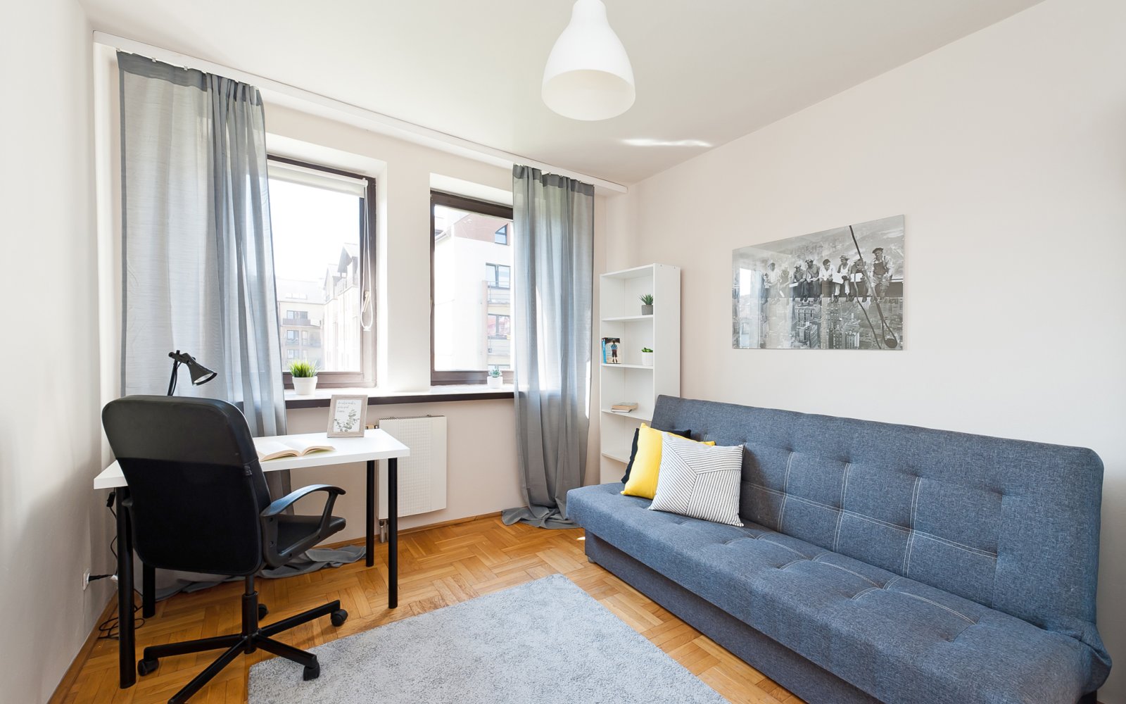 Mieszkanie o powierzchni 79 m2, składa się z 6 pokoi (z uwagi na wynajem dla studentów pokój dzienny przedzielony został na 2 mniejsze pokoje), aneks kuchenny, łazienka, oddzielnie toaleta i przedpokój. Mieszkanie posiada 2 balkony. Usytuowane na 3 piętrze w 4-piętrowym bloku. Właściciel może przywrócić mieszkanie do stanu pierwotnego czyli 4 pokoje i oddzielna kuchnia.