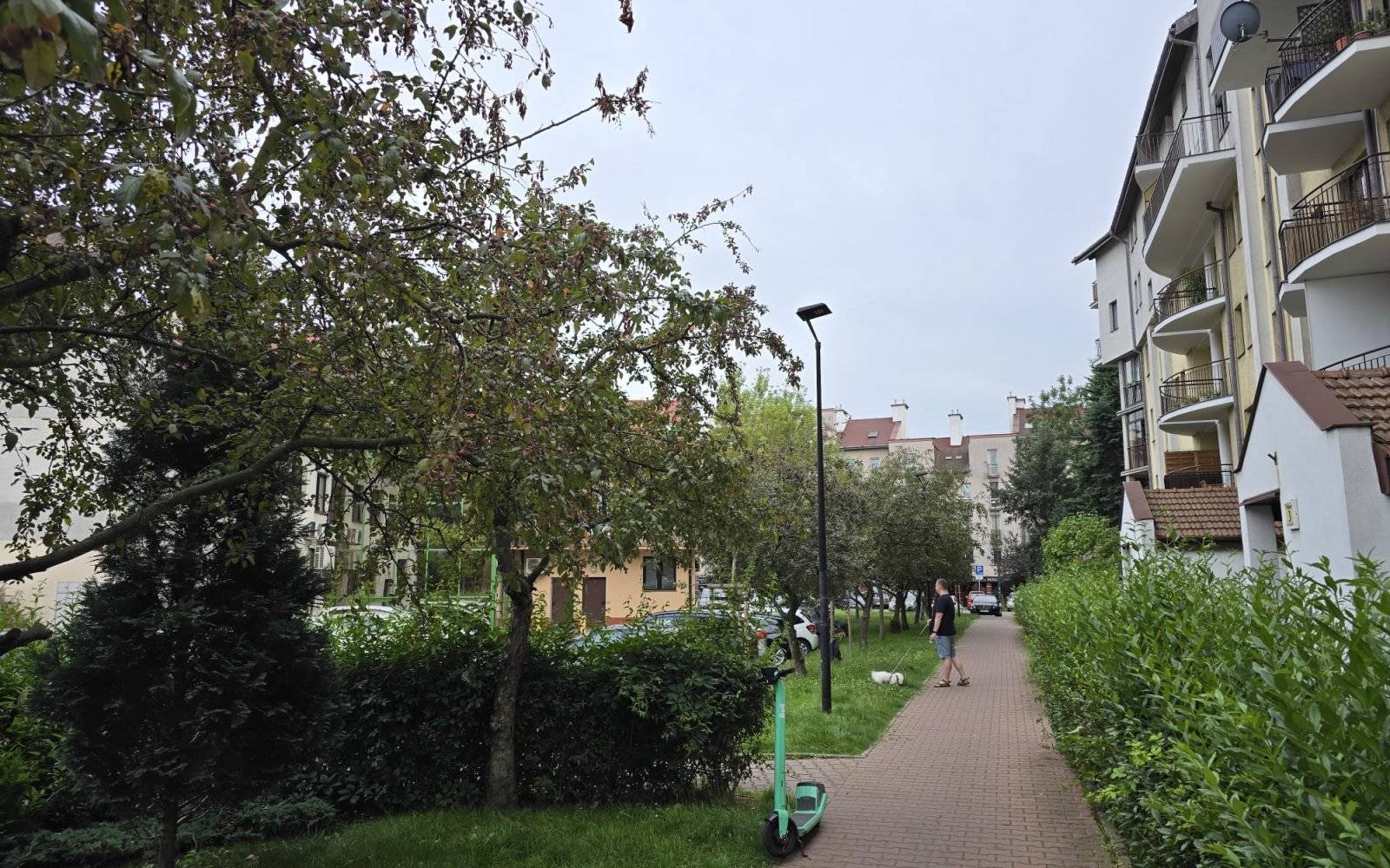 Kameralne, niskie bloki w otoczeniu zieleni.