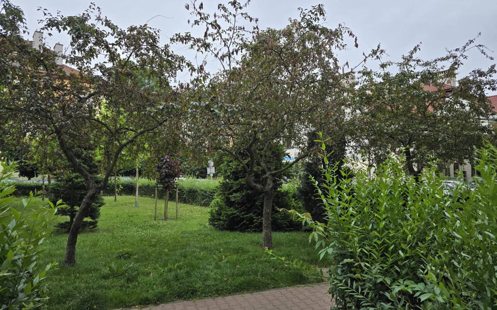 Kameralne, niskie bloki w otoczeniu zieleni.
