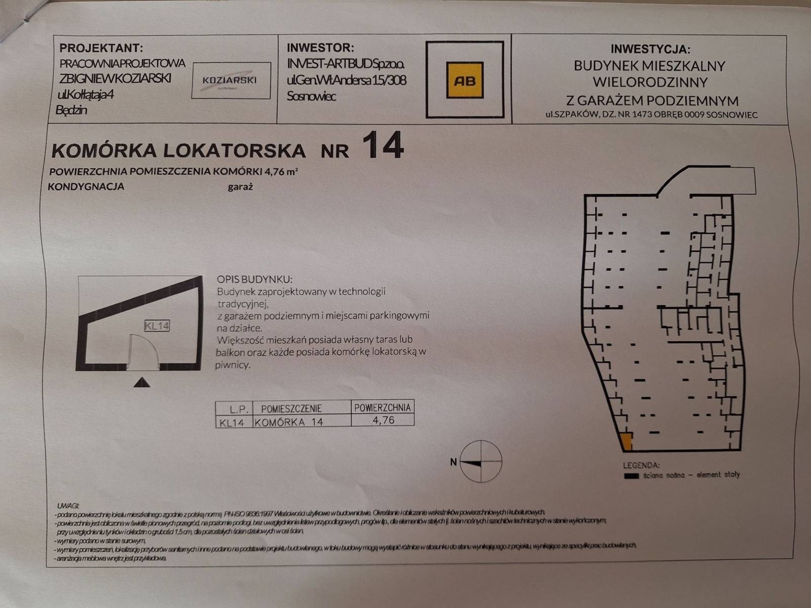 Dodatkowo komórka lokatorska o powierzchni 4,76 m2 (dodatkowo płatna).