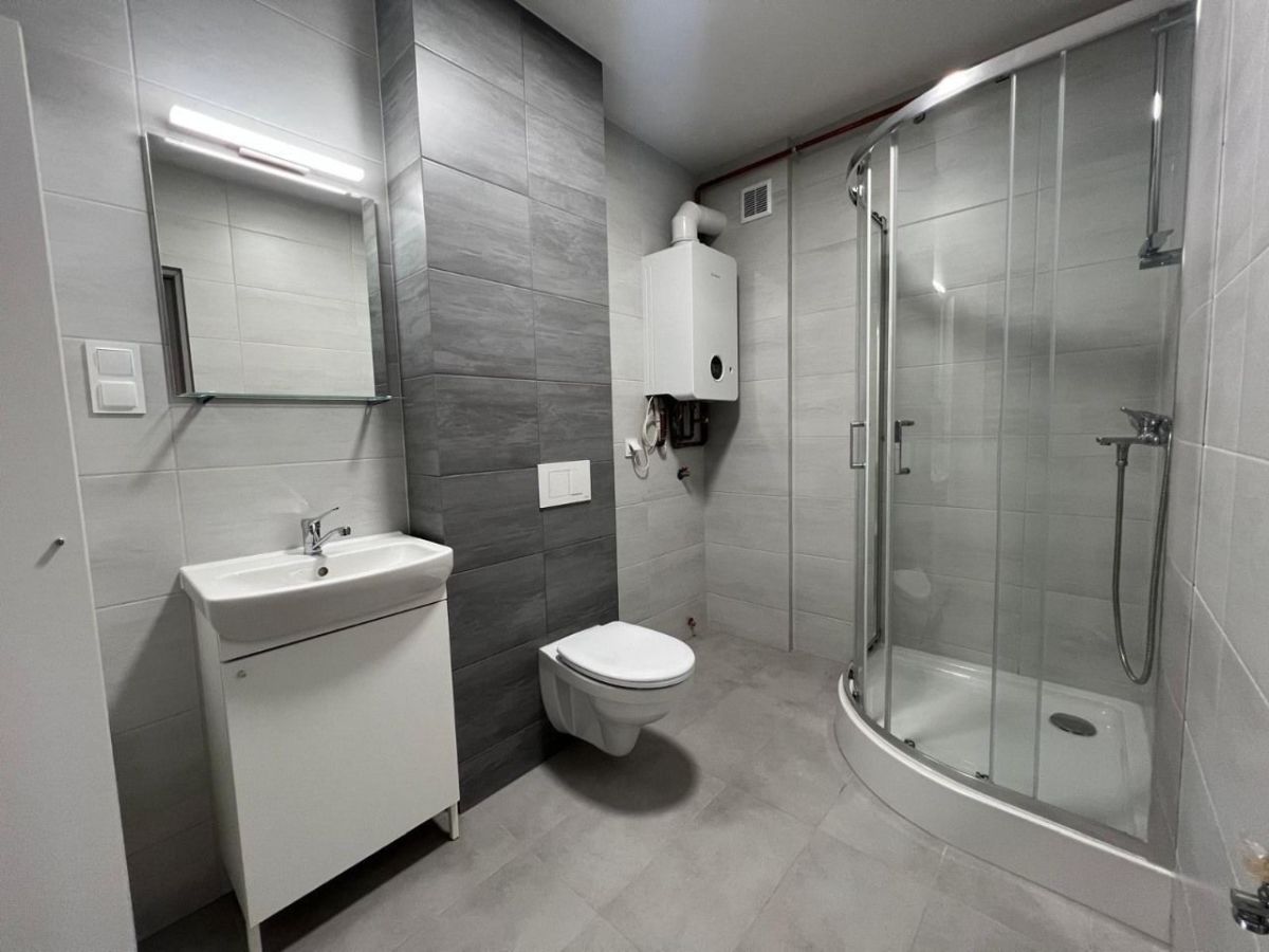 Mieszkania nowe, wykończone w bardzo dobrym standardzie. Kuchnia wyposażona w zabudowane meble, ze sprzętem, łazienka z kabiną prysznicową.